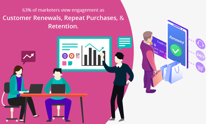According to statistics 63% of marketers view engagement as customer renewals, repeat purchases, and retention.