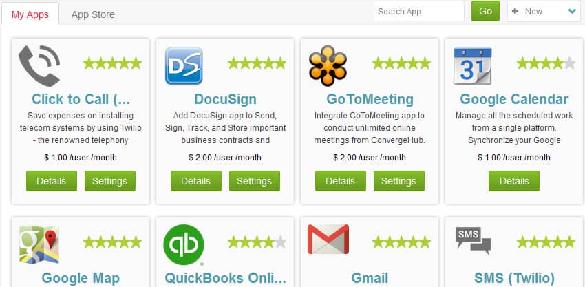 Streamline workflow by using third-party business apps from ConvergeHub Apps Store. ConvergeHub offers a suite of next-generation apps to connect faster with customers, employees, and partners from one platform. Check out the Apps Store and select from the existing Add-ons that ConvergeHub provides for crucial third-party business management software. At present, app integration solution is available for – Outlook, DocuSign, GoToMeeting, Twilio, Google Apps, Box, Quickbooks, Wufoo, Xero, Freshbooks, Zapier and many more.